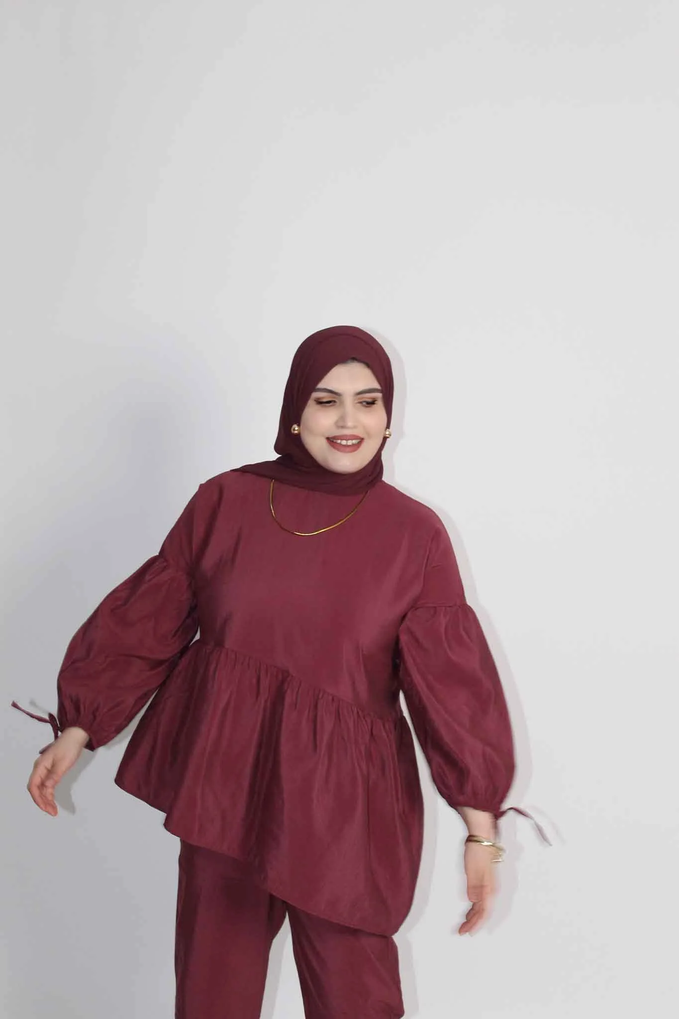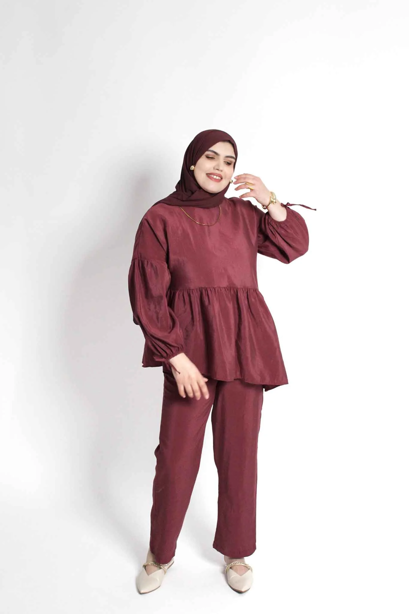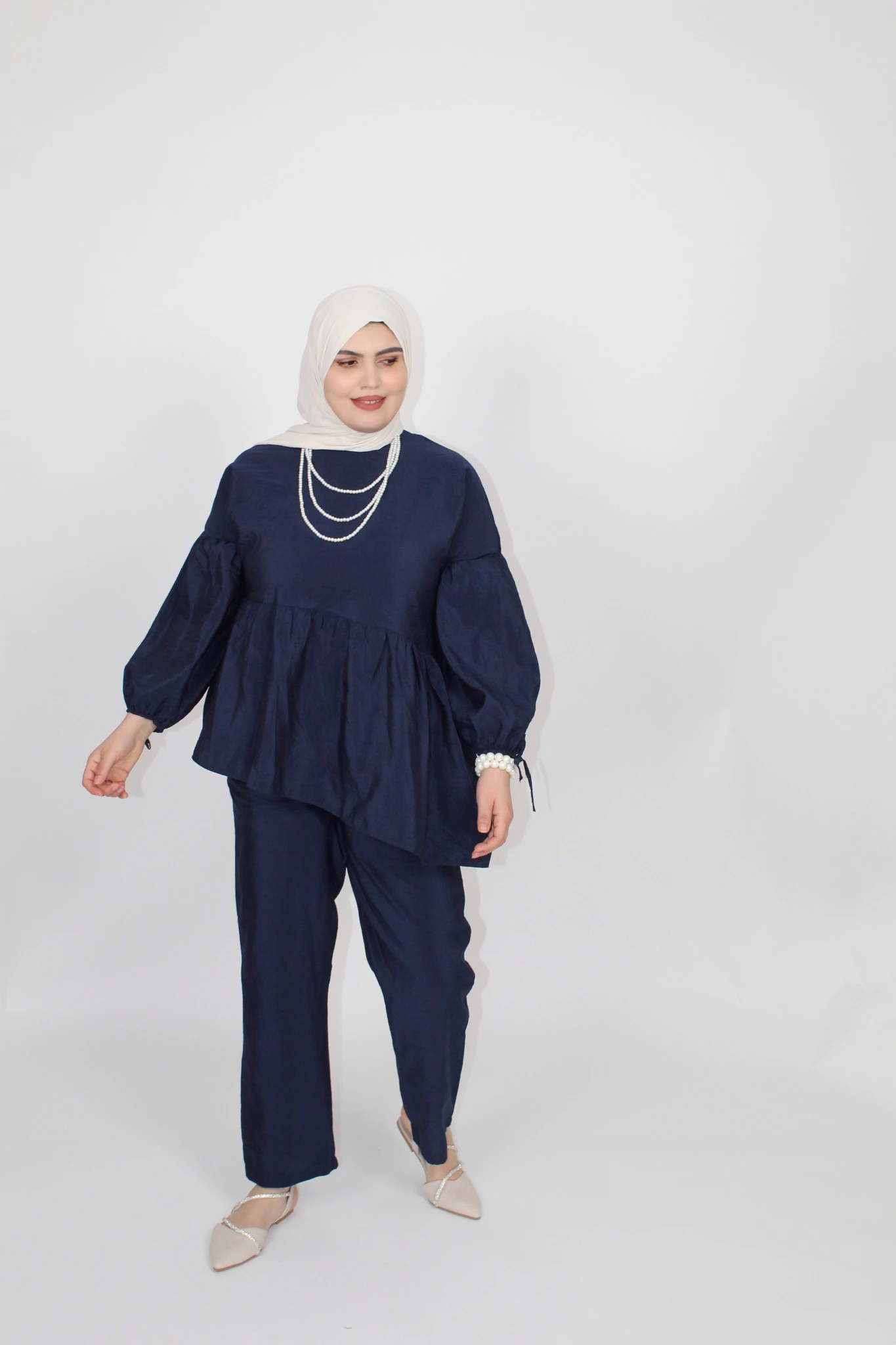 Ensemble deux pièces fluide et élégant, composé d’un pantalon large et d’un blazer sans manches