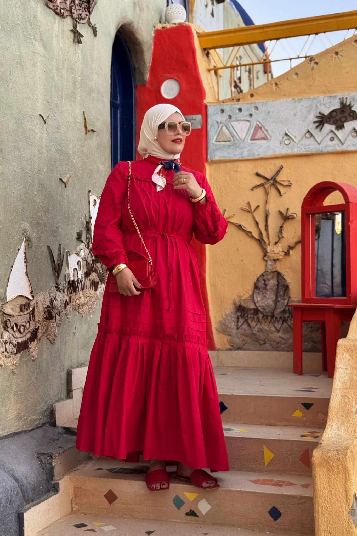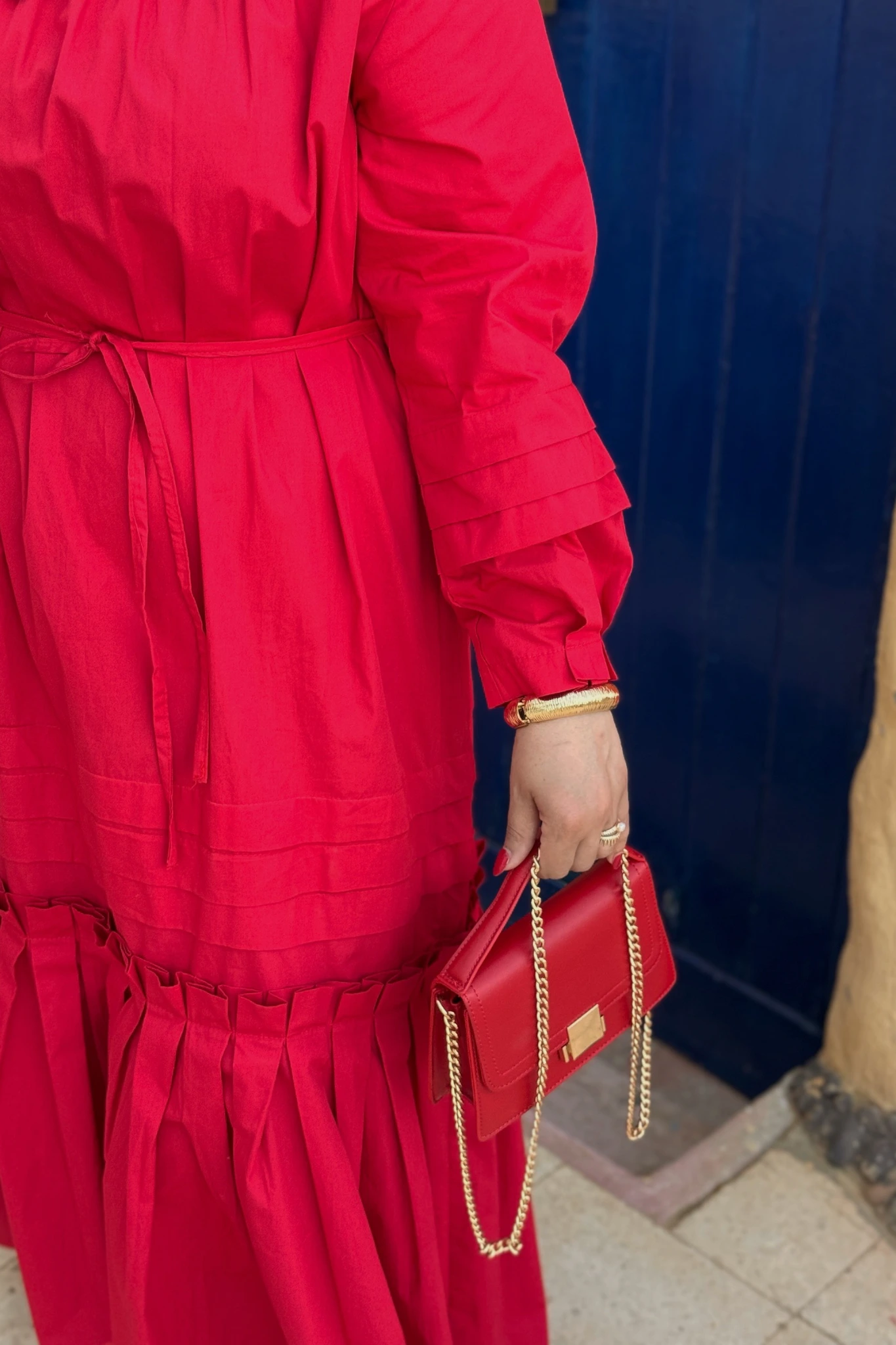 Élégante et pleine de caractère, cette robe longue en popeline se distingue par sa coupe fluide et ses détails soignés. Le tissu léger et structuré assure un tombé parfait, tandis que la taille froncée met subtilement la silhouette en valeur. Les manches longues bouffantes et les fronces discrètes ajoutent une touche romantique et moderne.