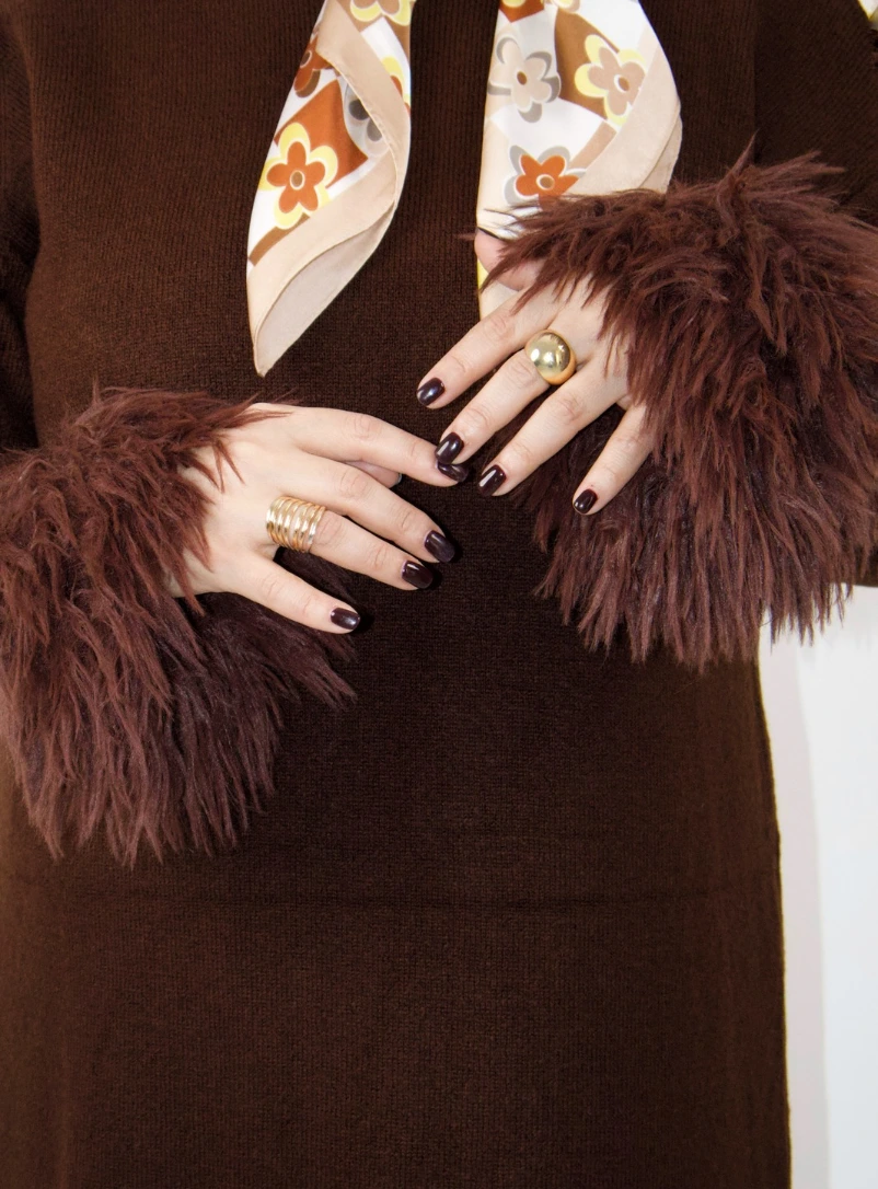 Sa coupe droite met la silhouette en valeur, tandis que les manches ornées de fausse fourrure apportent une touche raffinée et tendance.