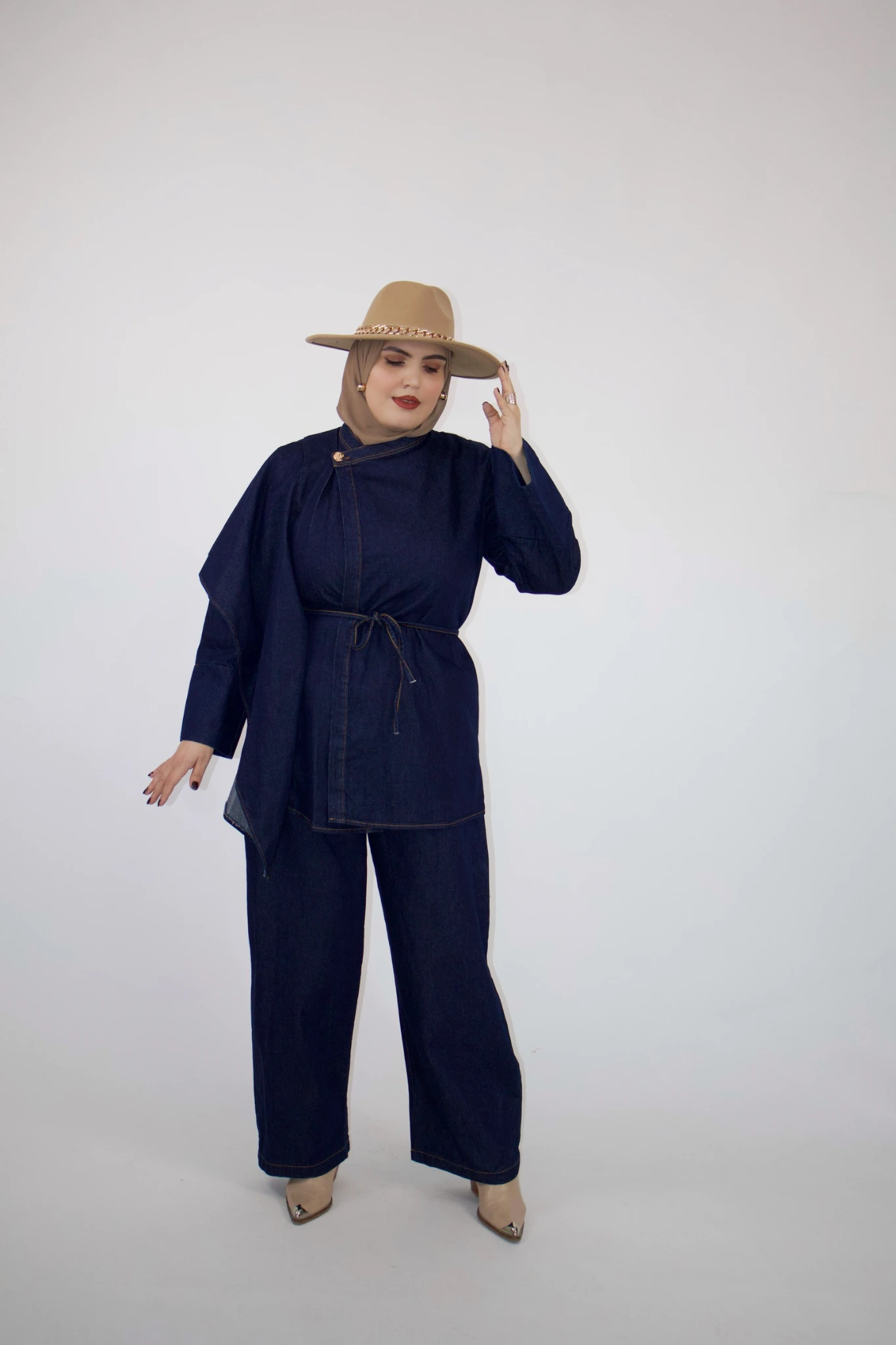 Un ensemble en denim au look jeune et audacieux.